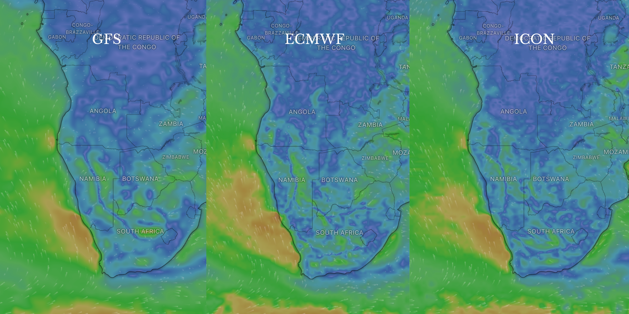 • Global vs local models: Global models, like GFS, ECMWF, cover the whole world with moderate resolution. Local models like WRF, HRRR, AROME, often have finer resolution in specific regions, catching smaller-scale features. Windguru, for example, might offer multiple model outputs for a spot, a coarse one and a fine one. It’s wise to compare them. If all models agree on say 20 knots, chances are good. If one says 20 and another says 12, uncertainty is high, plan accordingly (maybe take a range of kite sizes).
